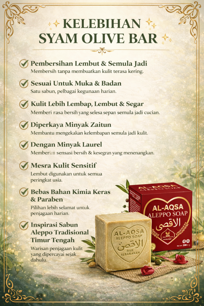 Kulit Sihat Secara Semulajadi Dengan Rahsia Tradisi Aleppo 1,000 Tahun.
